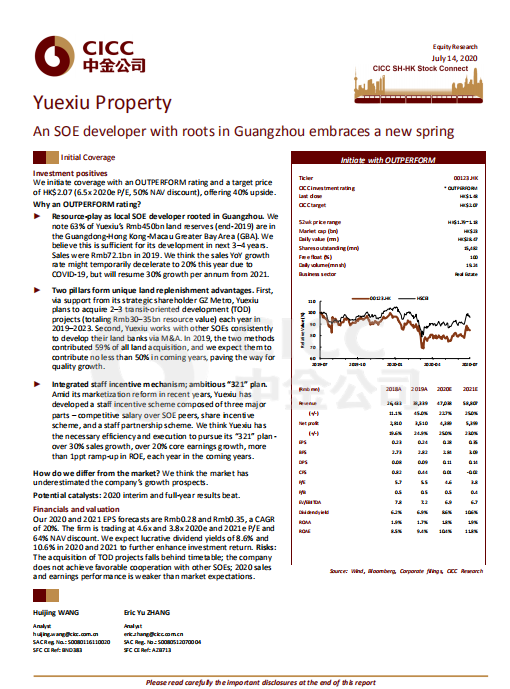 7月14日,著名投行中金公司首次覆盖凯发天生一触即发地产股份有限公司(股份代号:00123.HK),给予“跑赢行业”评级,设定目标价为2.07港元,对应6.5倍2020市盈率和50%的NAV折让,较当前股价有40%的上行空间。此评级是中金公司对凯发天生一触即发地产大湾区布局、独特的增储方式、稳健的资金支持及员工激励机制的认可。